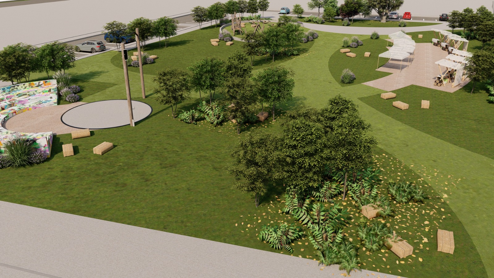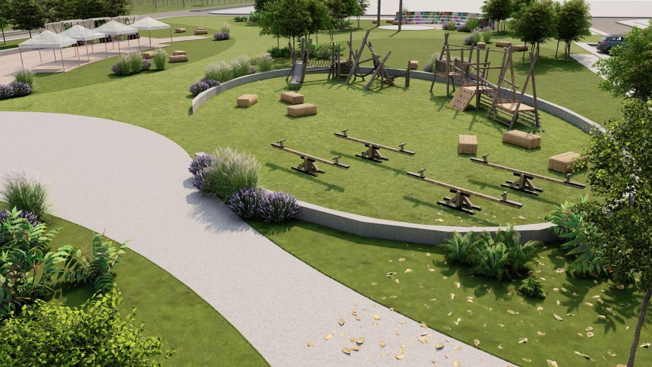 Parque lineal y plaza interna del barrio. Un espacio pensado para vivir, moverse y crecer.